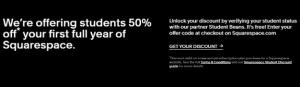 This is a Squarespace student discountNew users who are students (with a valid ID and account on Student Beans) can get 50 % off the annual Personal, Business, and Commerce billing plans.